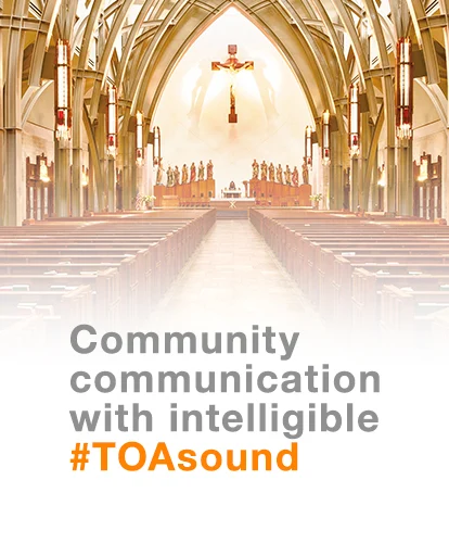 TOA devolped audio solutions for all sizes of churches to provide high-quality sound that is both powerful and intelligible - no matter what sound environments you have in your church. With our easily adjustable acoustic settings you can create sound environments for sacred moments. TOA’s unique digital processing technology minimizes reverberation during speeches or make full use of it during musical performances.